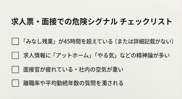 ここが最も重要です。業界全体がホワイト化しているとはいえ、旧態依然とした「ブラック企業」はまだ存在します。転職活動中にそれを見抜くための具体的なポイントを伝授します。