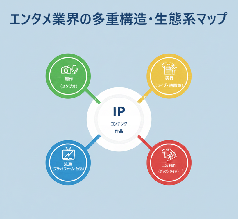 実は、現在のエンタメ業界は「クリエイター」と同じくらい、異業種で培ったスキルを持つ「ビジネス職」を強く求めています。デジタル配信の普及やSNSによるグローバル展開により、業界の構造はここ数年で劇的に変化しました。