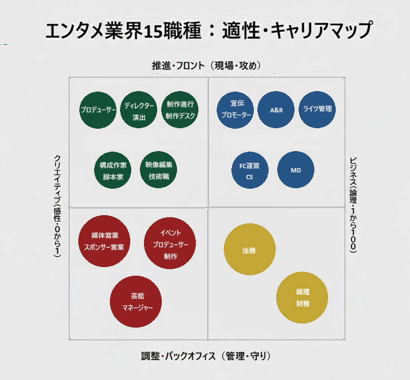 エンタメ業界の仕事は、大きく4つのカテゴリーに分類できます。