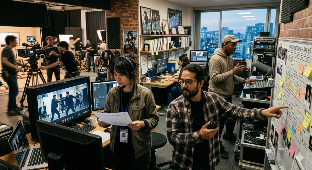 3. 制作進行・制作デスク スケジュール管理、予算の進捗確認、各所への連絡調整を担います。異業種の営業や事務経験が最も活きやすい職種であり、プロジェクト管理のプロと言えます。